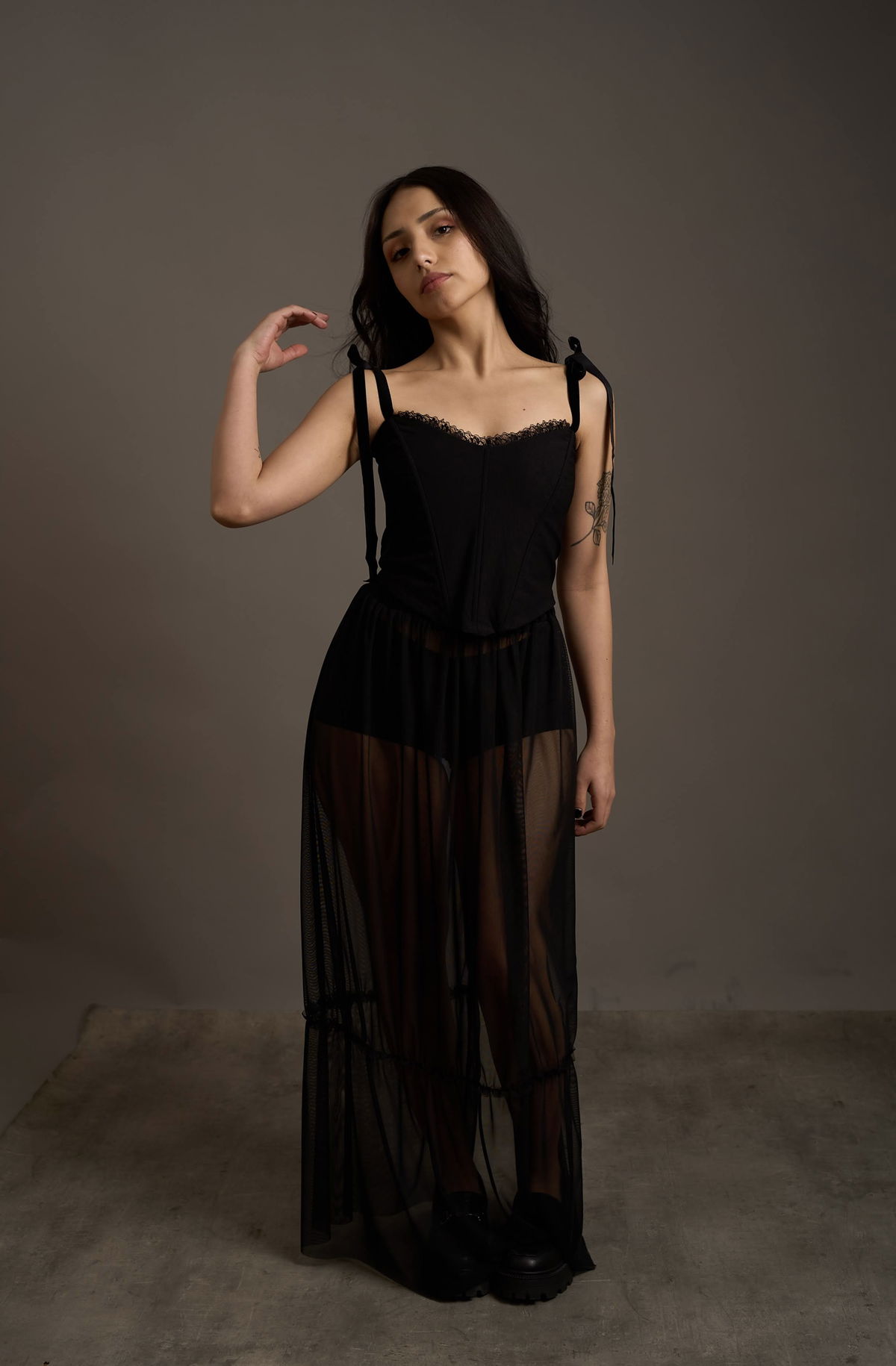 La modelo esta usando un talle 1